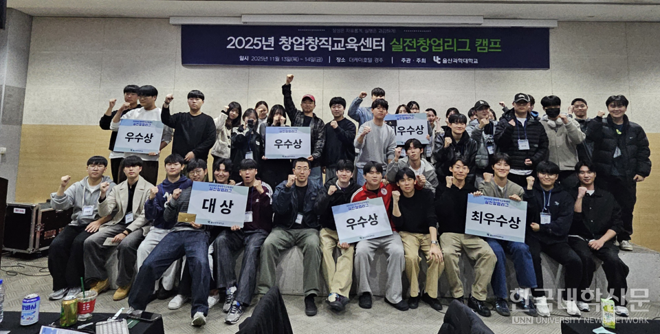[한국대학신문 심정은 기자] 울산과학대학교 창업창직교육센터는 지난 13일부터 14일까지 경주 더케이호텔에서 ‘2025년 실전창업리그 캠프’를 개최했다. 이번 캠프는 학생들의 창업 역량을 강화하고 팀 단위 프로젝트를 통한 실전 경험을 제공하기 위해 마련된 프로그램으로, RISE사업단·혁신지원사업단·SCOUT사업단,신산업분야 특화 선도전문대학 사업단 소속 취창업동아리 학생 등 약 48명이 참여했다.