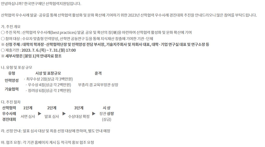 2023년 산학협력 우수사례 경진대회 개최 안내